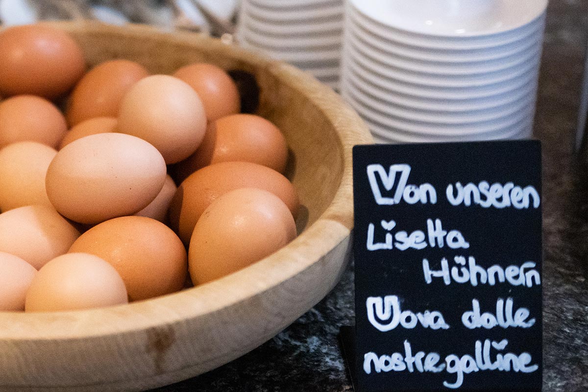Zu wissen, woher die Köstlichkeiten unseres Buffets stammen, mit welcher Leidenschaft sie hergestellt werden, wie viel Arbeit in ihnen steckt und wie sehr man dabei den Zyklen der Natur folgt: All das gibt uns ein gutes Gefühl. Deshalb beziehen wir auch die anderen Produkte für unser Frühstücksbuffet (und nicht nur) von Betrieben vor Ort, von unseren Bäckereien, Metzgereien und Sennereien, achten dabei auf höchste Qualität und bevorzugen Bioprodukte.