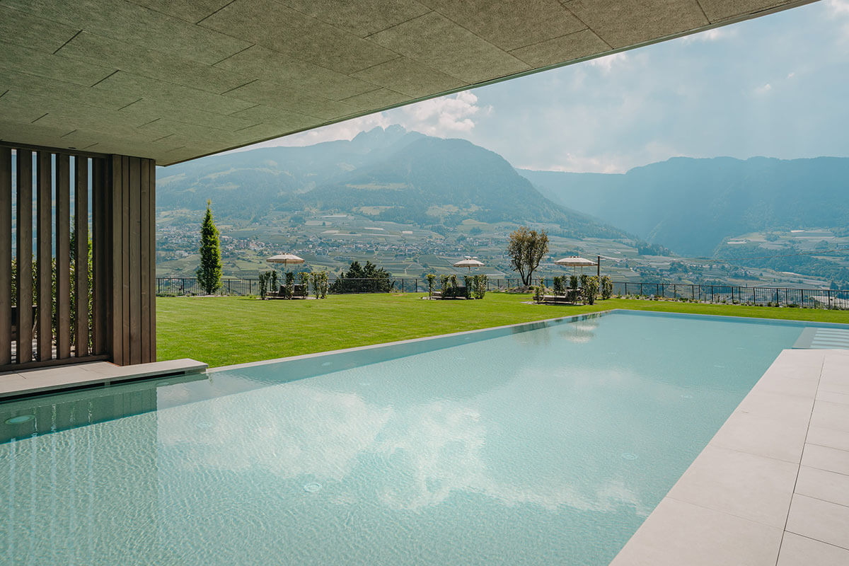 La nostra Infinity Pool di acqua salata riscaldata, lunga 20 metri, è il fiore all’occhiello della nostra oasi in giardino e garantisce momenti indimenticabili! Con un ingresso coperto, lettini idromassaggio integrati e acqua dalla temperatura piacevole, è ideale per fare qualche vasca lasciandosi alle spalle la quotidianità e abbandonandosi completamente alla meravigliosa vista panoramica ...