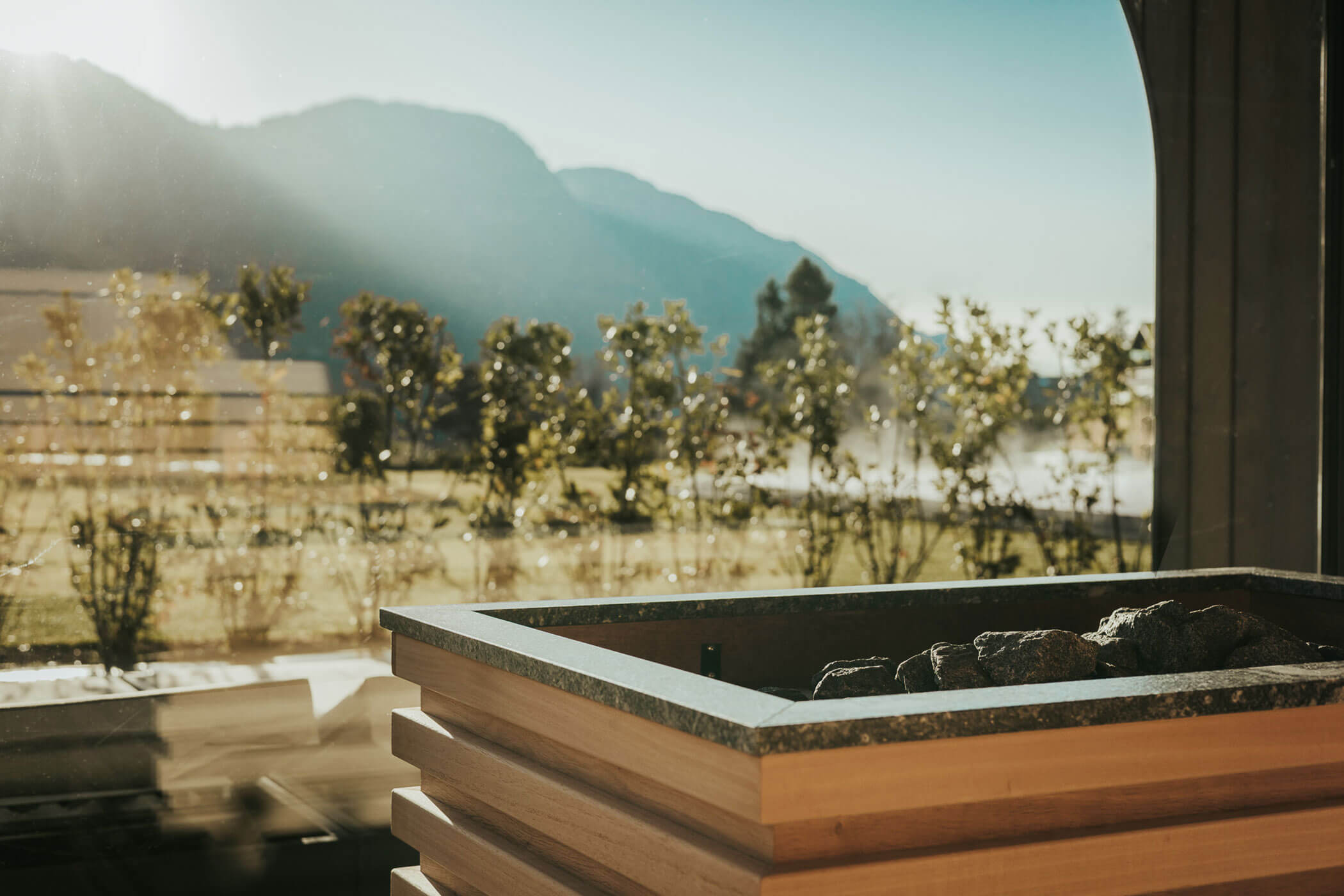 ... in inverno non c’è neve, ma il clima è piacevolmente mite e il sole è spesso ospite di Dorf Tirol. Mentre altrove si va a dormire, qui si può ancora godere del sole, fare yoga, tuffarsi in piscina e semplicemente essere felici.